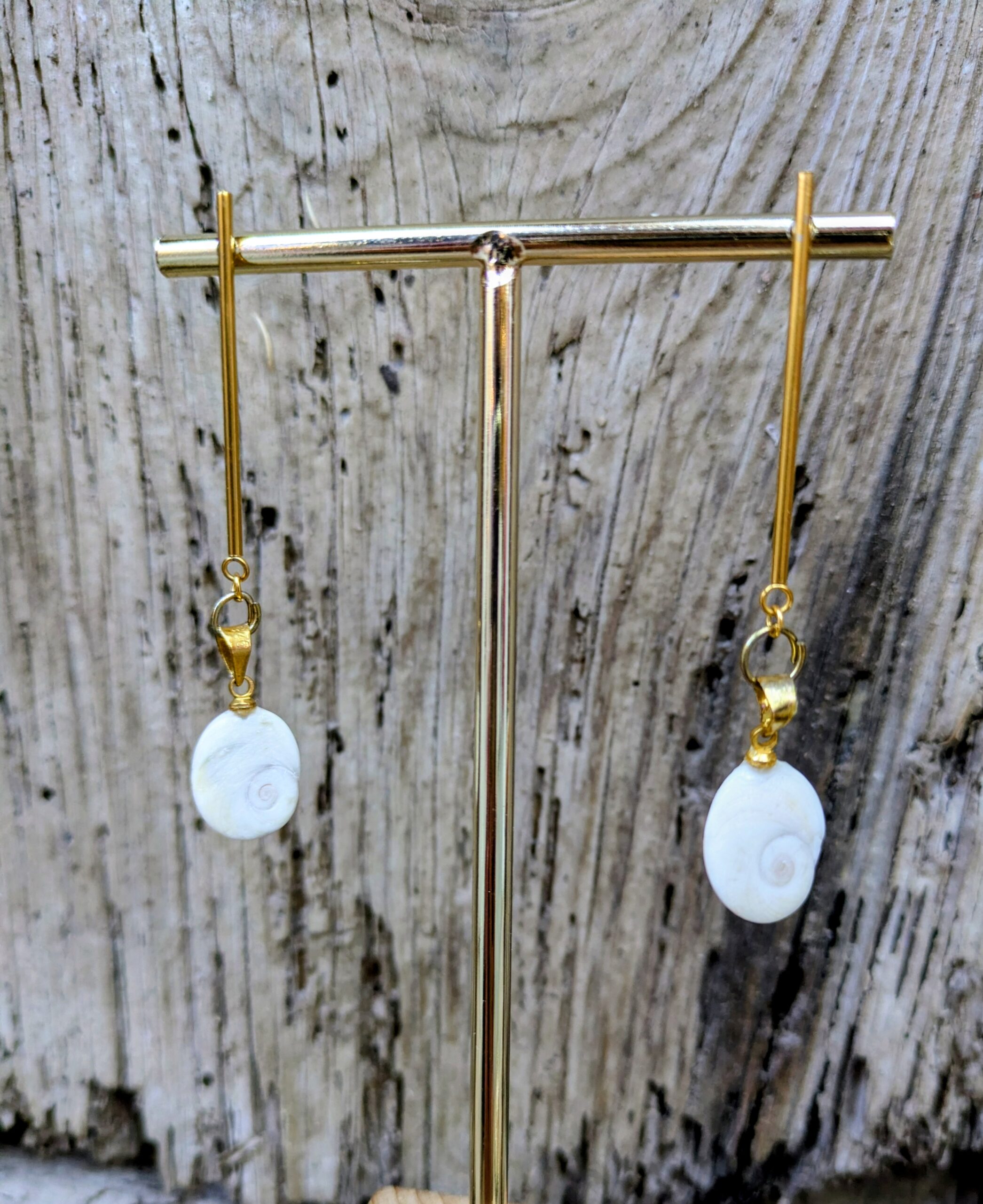 Estos pendientes están elaborados con auténticas orejitas de mar marina naturales, también llamadas «mal de cap» o «habita de la suerte», preservando su forma y color para que luzcan como recién encontrado en la orilla. Cada pieza es única, ya que ninguna orejita es igual a otra, aportando un toque especial y artesanal a tu look.