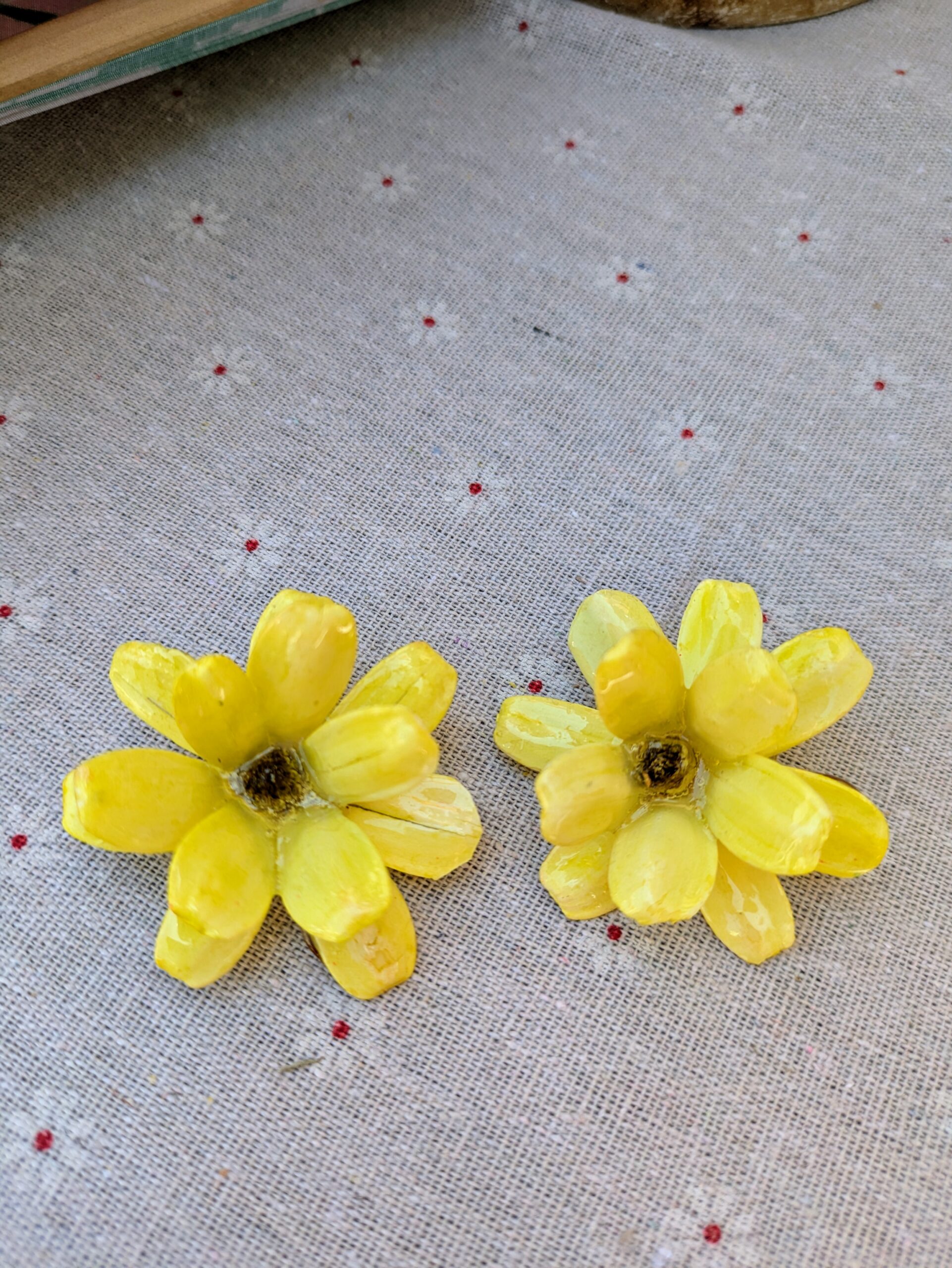 Estos pendientes están elaborados con auténticas semillas naturales encapsuladas en un polímero transparente, preservando su forma y color para que luzcan como recién cortadas. Cada pieza es única, ya que ninguna flor es igual a otra, aportando un toque especial y artesanal a tu look.