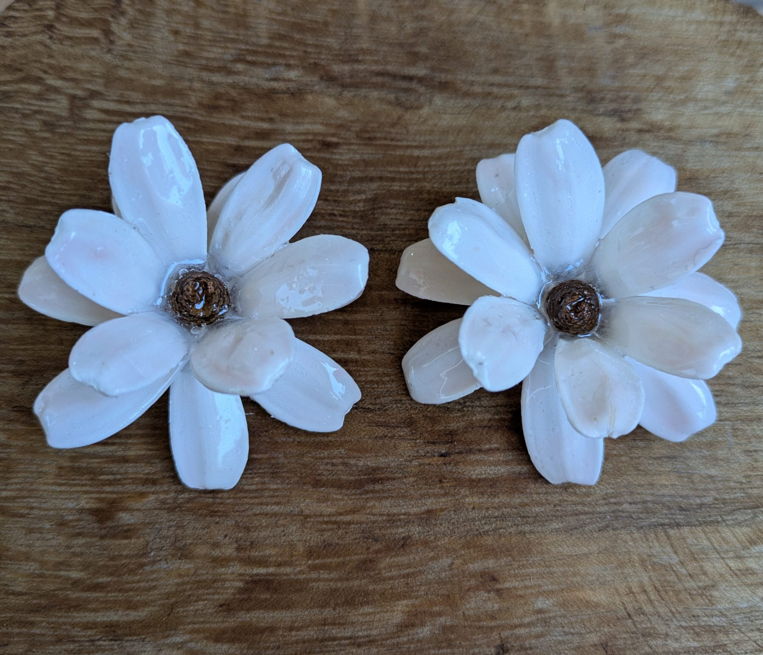Estos pendientes están elaborados con auténticas semillas naturales encapsuladas en un polímero transparente, preservando su forma y color para que luzcan como recién cortadas. Cada pieza es única, ya que ninguna flor es igual a otra, aportando un toque especial y artesanal a tu look.